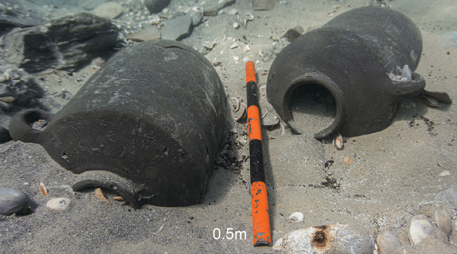 اكتشاف جرار أثرية على ساحل دور. الصورة: جامعة حيفا