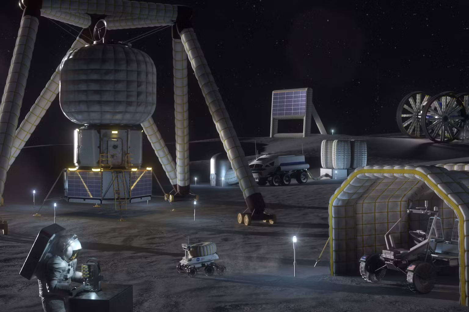 رسم توضيحي لنشاط التعدين على سطح القمر. حقوق الصورة: ناسا