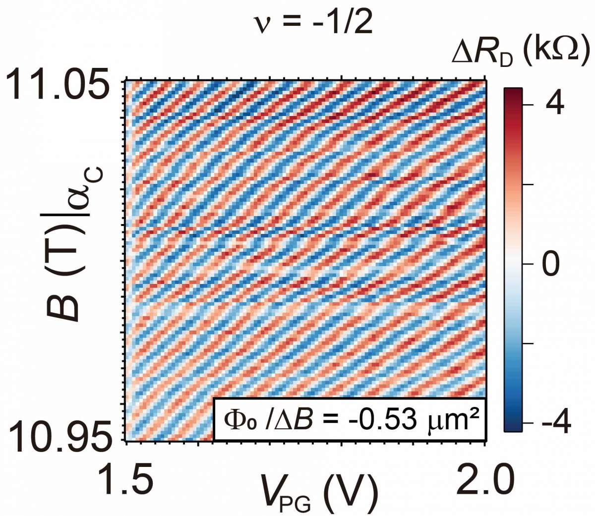 نمط التداخل الناتج عن مرور موجة من الأيونات السالبة حول جزيرة تحتوي على مجال مغناطيسي، ثم التقائها مجدداً بالموجة الأصلية. ومن خلال دراسة انحدارات الأهداب في هذا النمط، استنتج العلماء أن شحنة تعادل نصف إلكترون تحيط بالجزيرة.