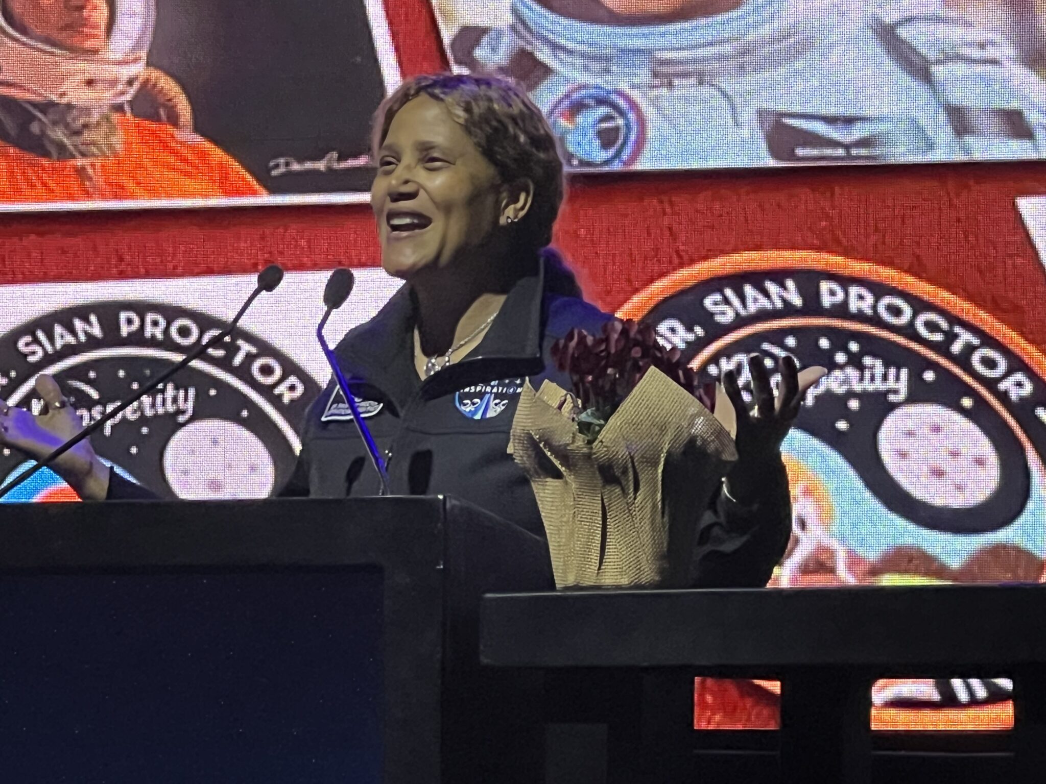 الدكتور سيان بروكتور على خشبة المسرح في مؤتمر إيلان رامون، تل أبيب، 28/1/2026. الصورة: آفي بيليزوفسكي