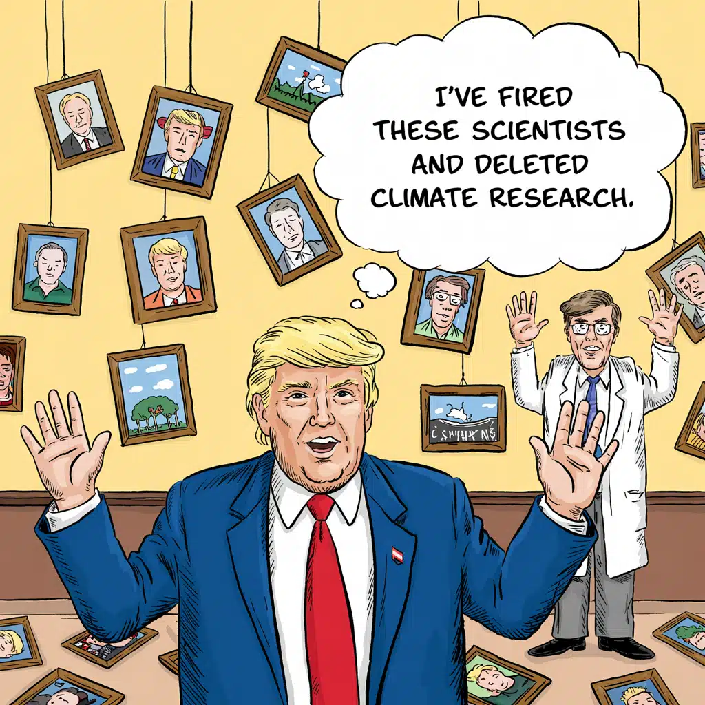 حول ترامب والعلم وإنكار تغير المناخ. الصورة مُعدّة باستخدام ideogram.ai